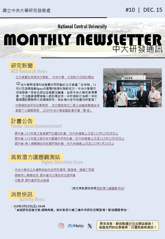 113年1月12日(五) 10:00 「卓越研究促進方案-頒獎典禮」將於教研大樓三樓未來研究空間登場!歡迎踴躍參加。