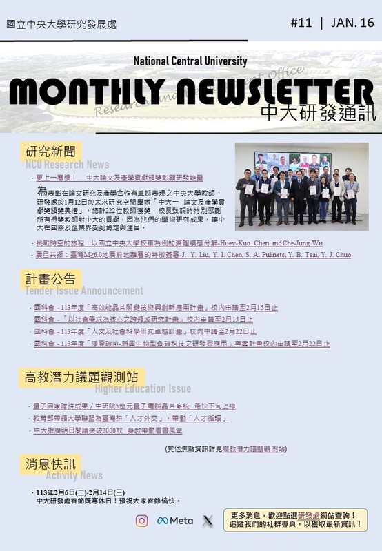 113年2月6日(二)-2月14日(三) 中大研發處春節既寒休日!預祝大家春節愉快。