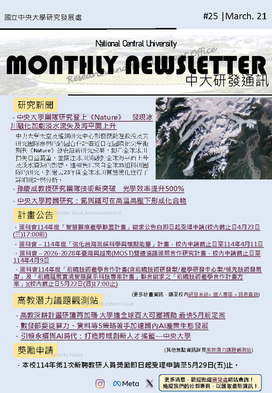 中央大學太空及遙測研究中心鄭懷傑助理教授及其研究團隊參與的跨國合作計畫近日在國際頂尖學術期刊《Nature》發表最新研究成果,揭示全球冰川損失日益嚴重,並關注冰川消融對全球海平面上升及淡水資源的影響。這項集結來自全球35組科研團隊的研究,對過去23年間全球冰川質量變化進行了詳細統計與分析。