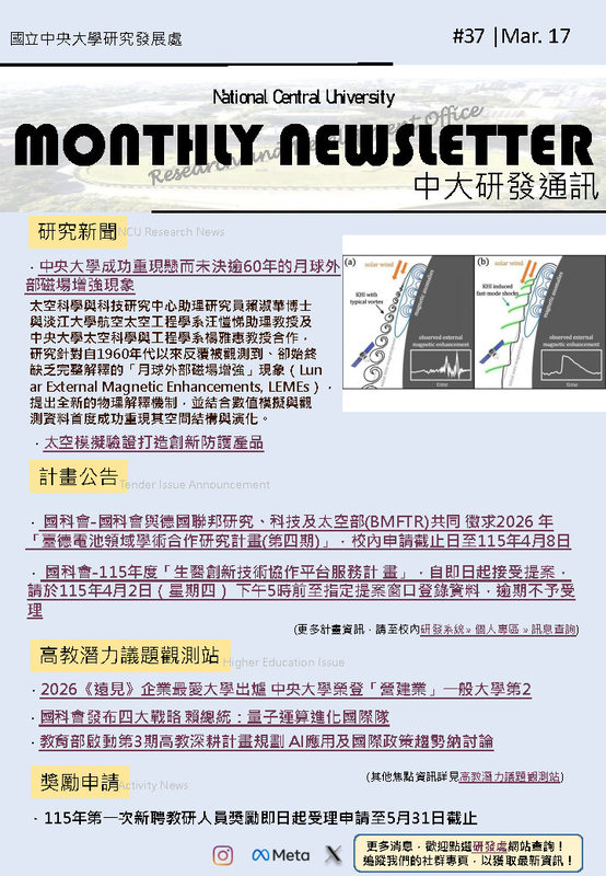 . 國科會-國科會與德國聯邦研究、科技及太空部(BMFTR)共同 徵求2026 年「臺德電池領域學術合作研究計畫(第四期)」,校內申請截止日至115年4月8日