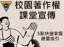 中央大學校園智慧財產權宣導 著作權保護創作表達,避免影印整本書、下載盜版、未註明出處等侵權行為。敬請教師利用本宣傳PPT於課堂加強宣導,共同尊重智慧財產,守護校園。