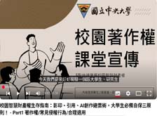 《校園智慧財產權生存指南》 運用AI生成技術,將嚴肅的法規概念轉化為生動有趣的角色對話。