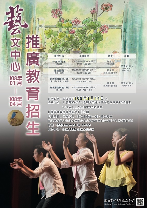 ● 報名請洽國立中央大學藝文中心索取簡章(文三館103.104辦公室)