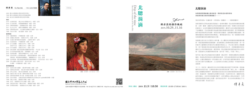 「北牕涓滴-傅彥熹的創作軌痕」將於11月5日(二)上午10:30,於中央大學藝文中心舉行展覽開幕式,展期自10月29日至11月16日,免費參觀,開放時間為周二至周六10:00至17:00,周日至周一及國定假日休館。