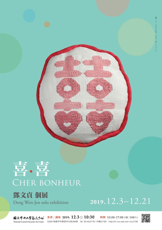 「喜喜──鄧文貞個展」將於12月3日(二)上午10:30,於中央大學藝文中心舉行開幕式,藝術家將親自蒞臨現場導覽分享,展期自12月3日至12月21日,免費參觀,開放時間為週二至週六10:00至17:00,週日至週一及國定假日休館,邀請各位一同進入纖維藝術的世界。