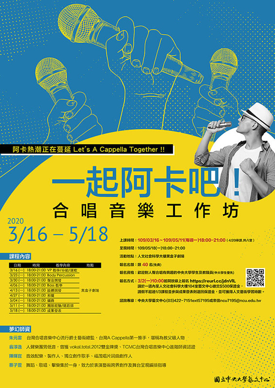 ● 報名資格:歡迎對人聲合唱有興趣的中央大學學生及教職員(中大學生優先)
