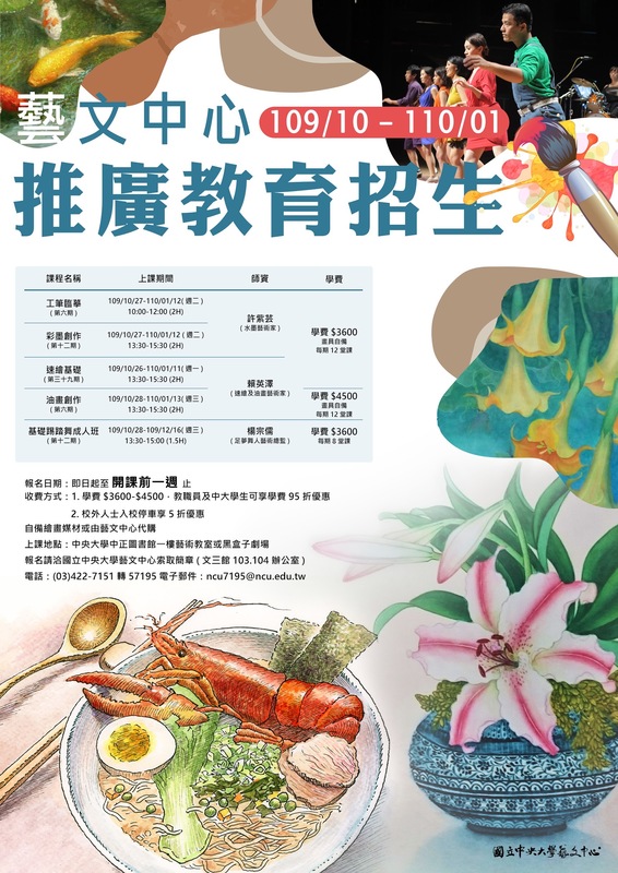 ● 報名請洽國立中央大學藝文中心索取簡章 (文三館104辦公室)