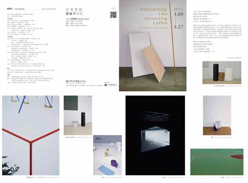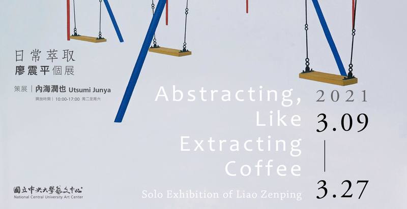「日常萃取-廖震平個展」將於3月9日(二)上午10:30,於中央大學藝文中心舉行展覽開幕式,展期自3月9日至3月27日,免費參觀,開放時間為周二至周六10:00至17:00,周日至周一及國定假日休館。