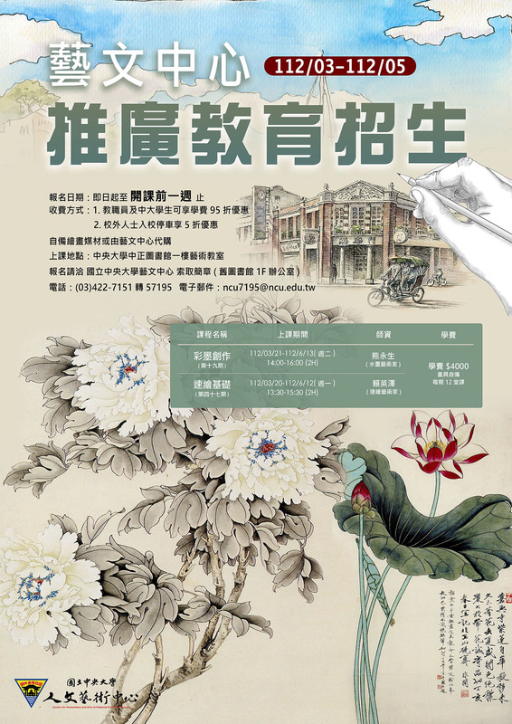 ● 報名請洽文三館112或舊圖1F藝文中心辦公室索取簡章