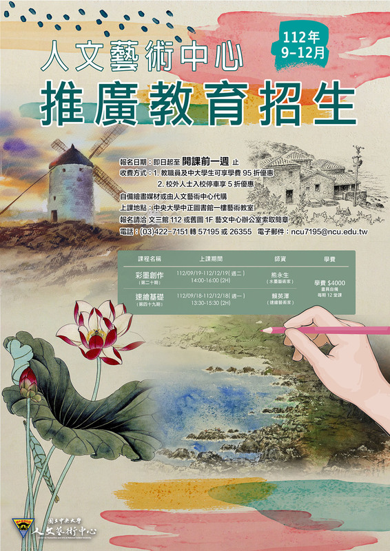● 報名請洽文三館112或舊圖1F藝文中心辦公室索取簡章