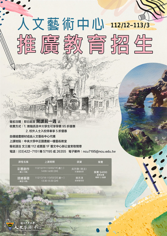● 報名請洽文三館112或舊圖1F藝文中心辦公室索取簡章