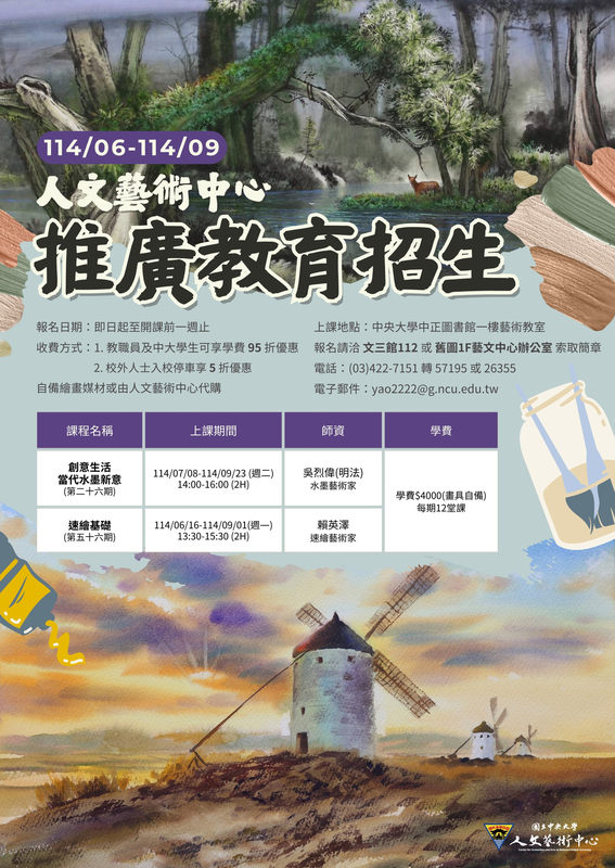 ● 上課地點:中央大學中正圖書館一樓藝術教室