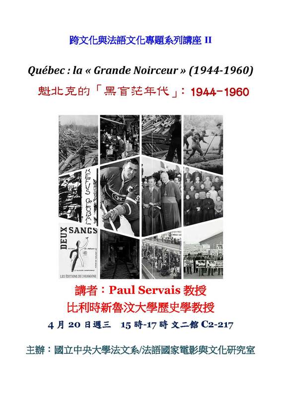 本期焦點 跨文化與法語文化專題系列講座I : 1800至1950年間科學東方主義的誕生與發展跨文化與法語文化專題系列講座II : 魁北克的「黑盲茫年代」:1944-1960魔光實驗室影推台灣電影專題(2016.04.18-22) : Grandma and Her Ghosts 魔法阿媽