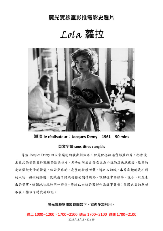 魔光實驗室影推電影史選片 : Lola 蘿拉