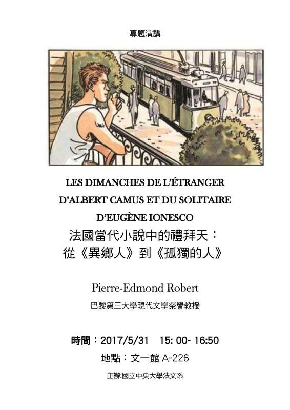 專題演講 : 法國當代小說中的禮拜天:從《異鄉人》到《孤獨的人》