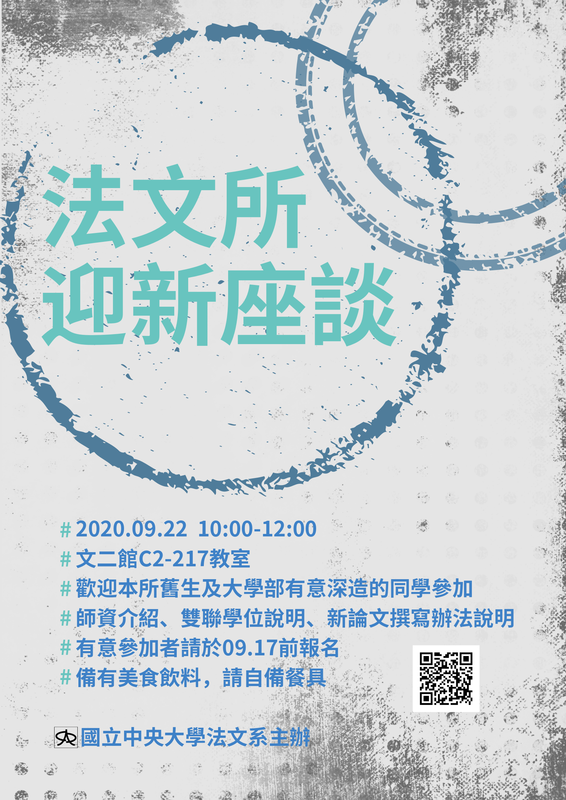 法文所迎新座談歡迎本所新舊生及大學部有意升學深造之同學一同出席。