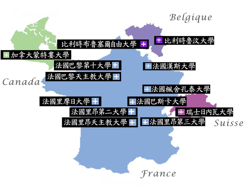 許凌凌教授:十七、十八世紀戲劇、東西方跨文化研究 許綺玲教授:當代文學、跨藝術研究、視覺文化 林志芸副教授:十八世紀文學 林德祐副教授:文學理論、法國現當代文學 劉柏桑Tanguy Lepesant副教授:政治學、社會學、文化政策 甘佳平副教授:十九世紀法國文學、中法比較文學 徐佳華副教授:卡繆專題研究、北非法語文學 葛尹風Ivan Gros副教授:法國文學、傳播文化與實務演練、風格學、漫畫報導文學 梅豪方Frank Muyard副教授:社會學、跨文化研究、北美法語文化 翁振盛助理教授:文學理論、精神分析、法國現當代文學 史惟筑助理教授:電影美學、初始電影研究、當代影視覺藝術、影像教育 高滿德Matthieu Kolatte助理教授:台灣電影、中譯法 薛鎵鋐助理教授:語言學理論史 本系與法語國家之締約大學